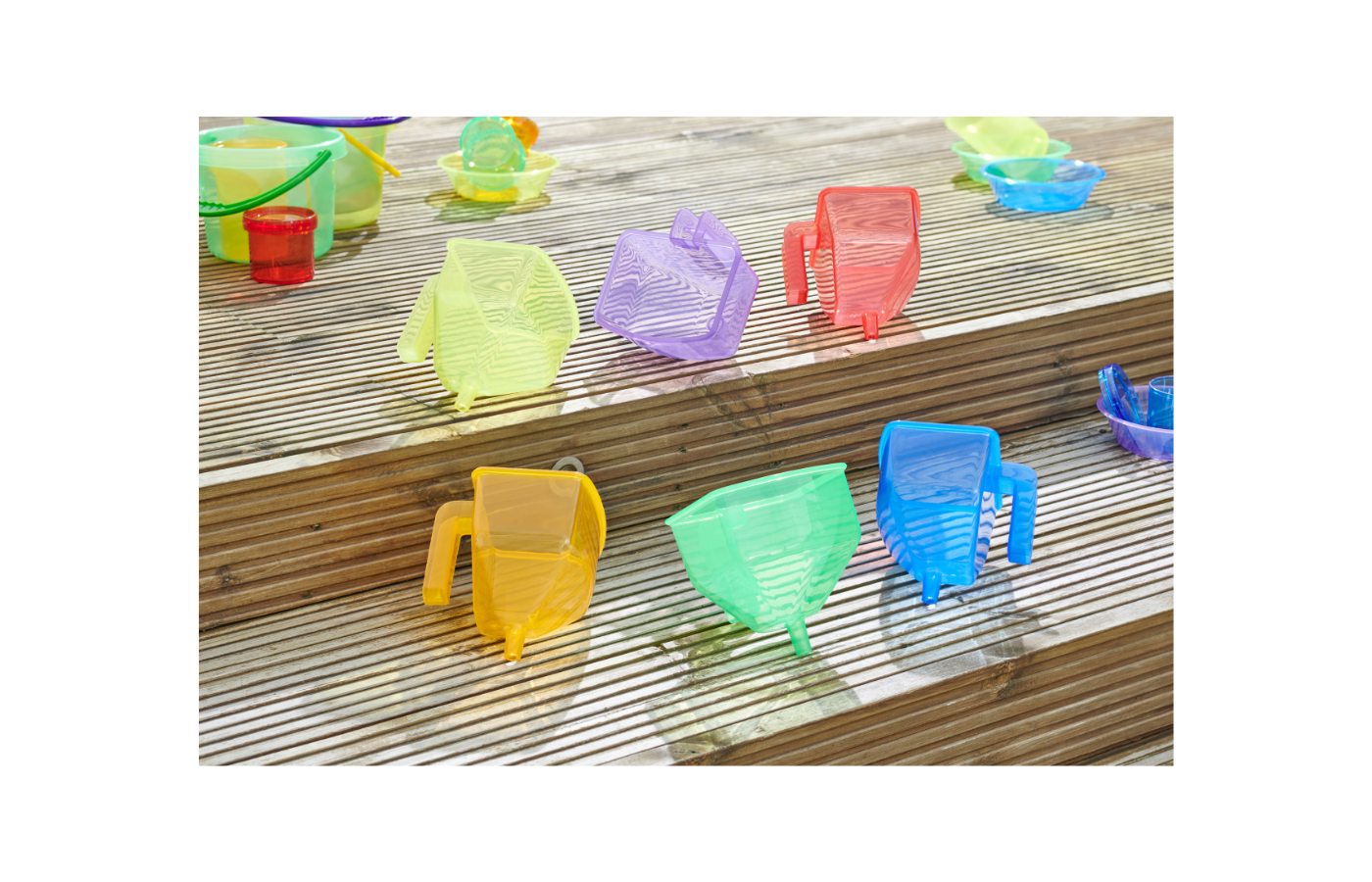 Ideaal voor messy play, het verkennen van zand- en waterpret, het onderzoeken van volume en voor kleurmenging en -matchen. Waarom niet combineren met onze regenboog flexi-tubes of transparrante maatbekers voor extra plezier!