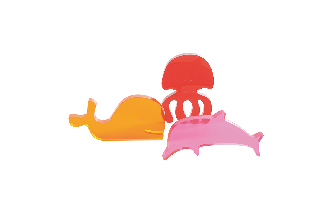 Deze kleurrijke, transparante onderwaterdieren zijn leuk om te gebruiken tijdens het fantasierijk spel. Ze kunnen zowel binnen, buiten als zelfs onder water gebruikt worden.