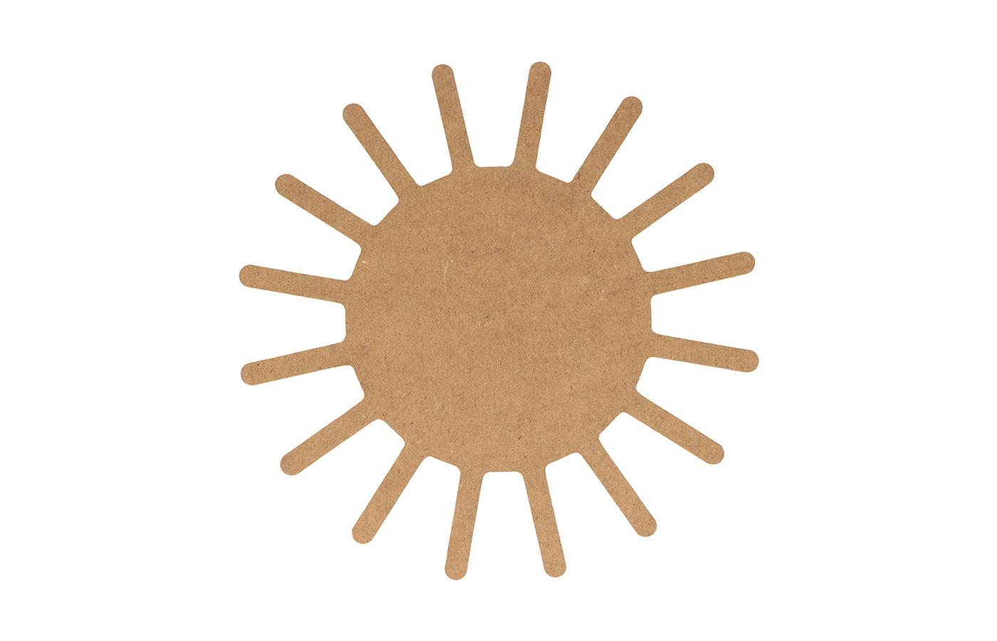 Houten silhouette van een zon te gebruiken in verschillende thema's of op de verteltafel. Ook zeer geschikt om te decoreren.